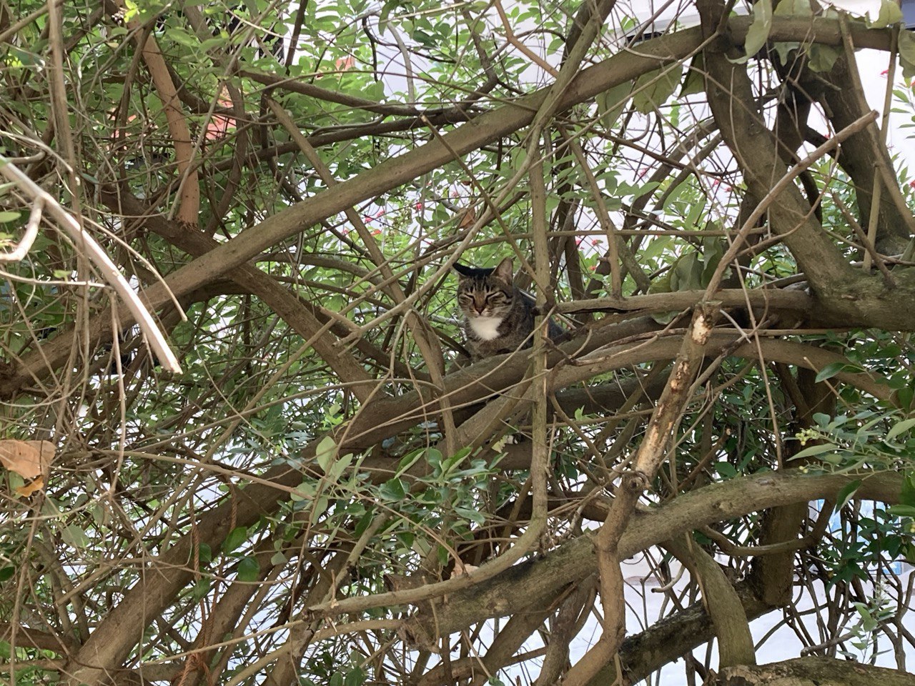 This cat is always near my apartment, falling asleep in the same tree!