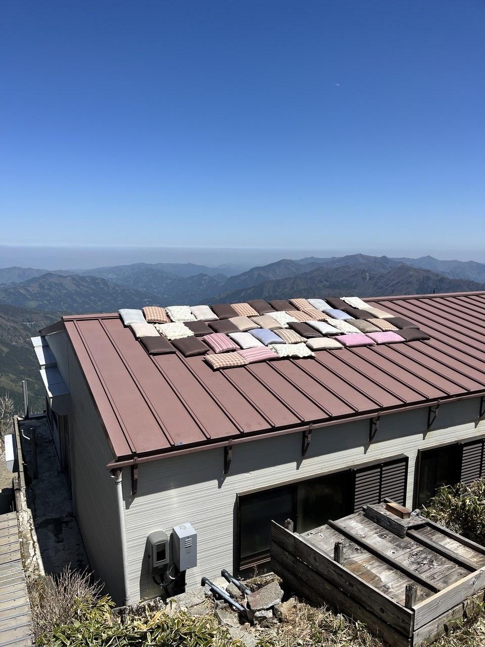 They were drying pillows on the roof. I think this is a pretty nice introspective photo and also highly reflective of Japanese culture. The sunny day was not to be wasted and pillows had to be air-dried. They were so neatly placed.