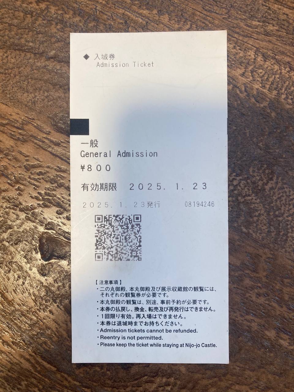 We paid 800 yen per ticket for entry into Nijo Castle, not expensive at all!